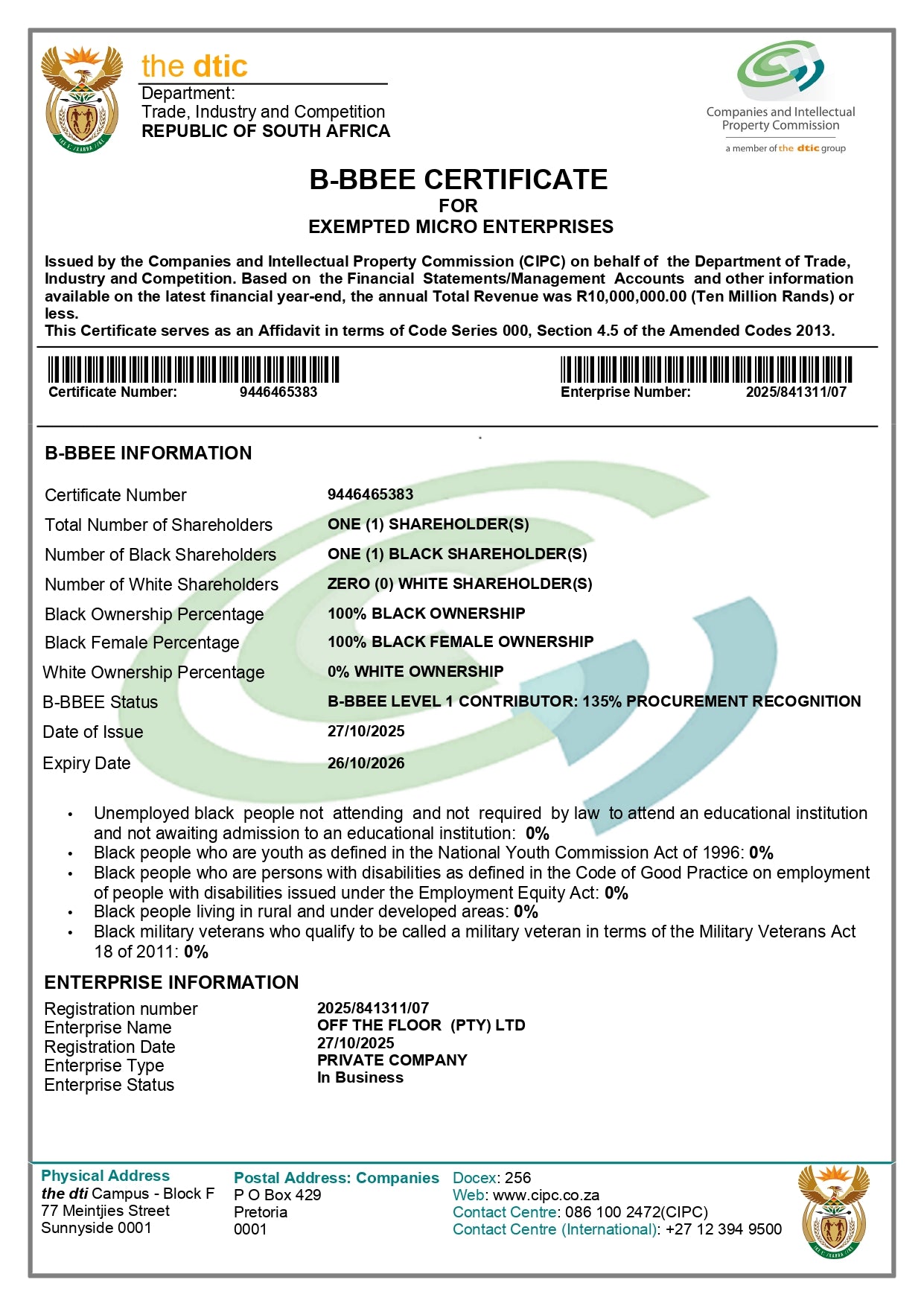 At Off The Floor, we’re proud to be a fully women-owned business committed to empowering our community. We invite you to view our B-BBEE Certificate and see how we’re making a positive impact while providing quality products and exceptional service. Your support helps us continue to grow and inspire!