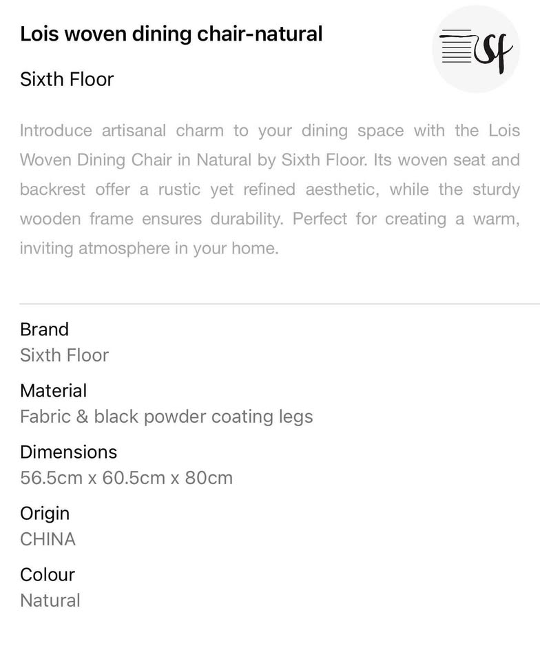 Add natural warmth and artisanal texture to your dining space with the Lois Woven Dining Chair – Natural. Featuring a beautifully handwoven seat and backrest crafted from natural fibres, this chair pairs effortlessly with its sleek wooden frame for a relaxed yet refined look. The curved silhouette and supportive design make it as comfortable as it is stylish—perfect for long, leisurely meals or everyday use. A timeless addition to coastal, boho, or modern interiors. Available now at Off the Floor – where craftsmanship meets casual elegance.