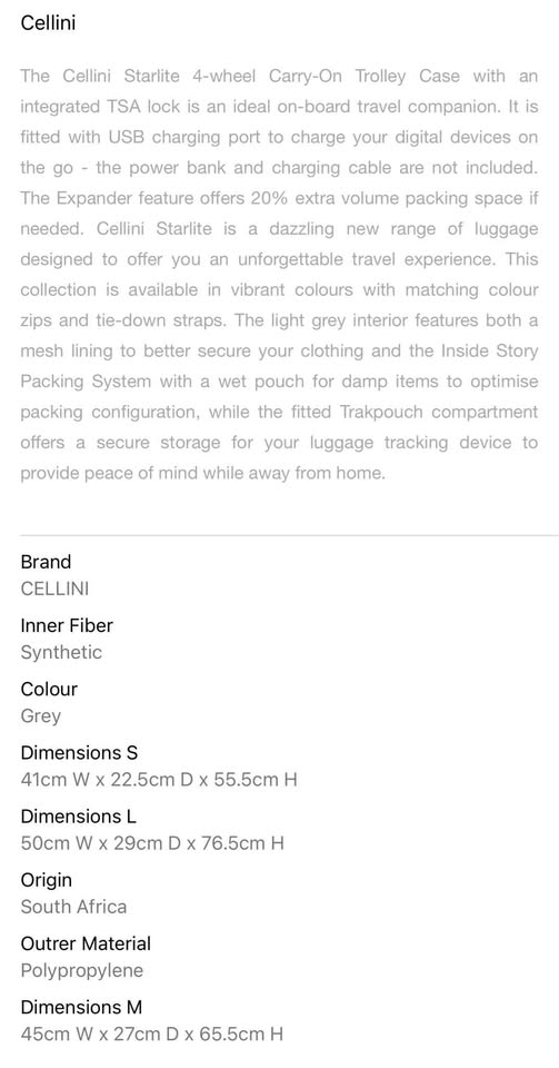 Step up your travel game with the Cellini Starlite Medium 4‑Wheel Trolley in sleek grey—including a built‑in TSA combination lock for added security and peace of mind.